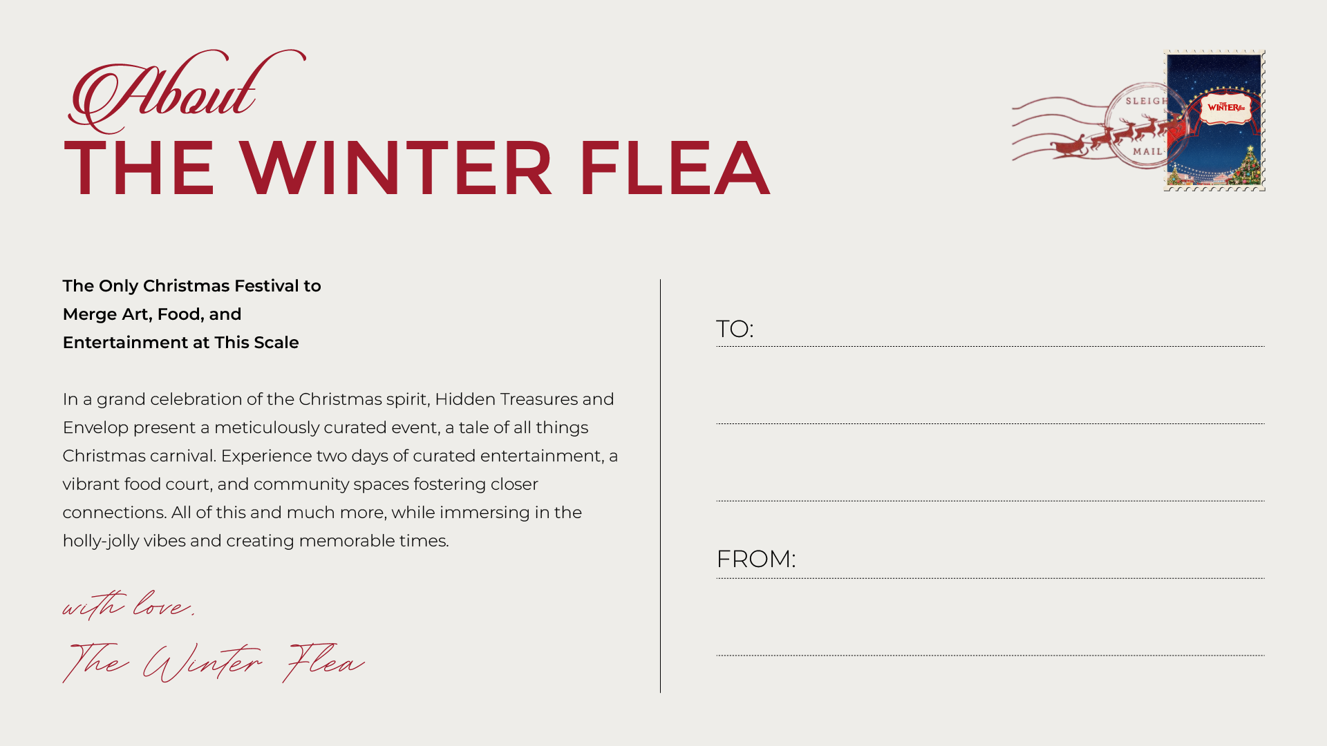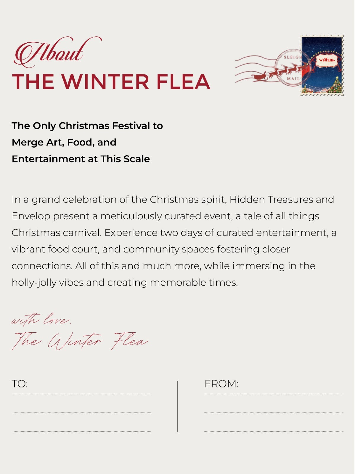 At the heart of The Winter Flea is a passion for community building, and we are looking for brands, artisans, and partners who share this vision. Whether you're interested in setting up a stall or collaborating in other meaningful ways, The Winter Flea provides a unique platform to showcase your brand and connect with a wide, engaged audience.